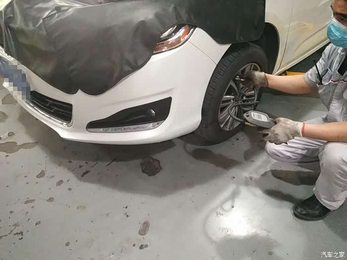 车辆进入车间,开始铺叶子板护垫