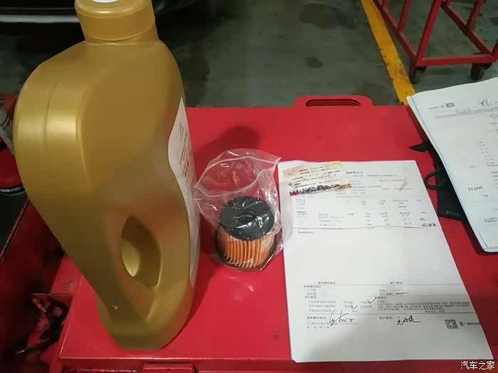师傅从库房领来了新材料(机油、机油滤芯、密封圈)