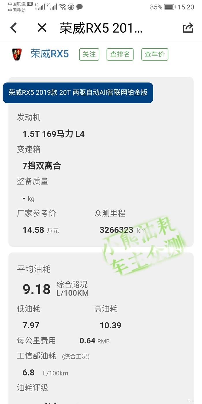 这是19款RX5油耗,总之油耗个人开车习惯不一样,路面环境不一样不要太纠结了,不要看油耗参数和油表,看平均实际油耗选车就行。
