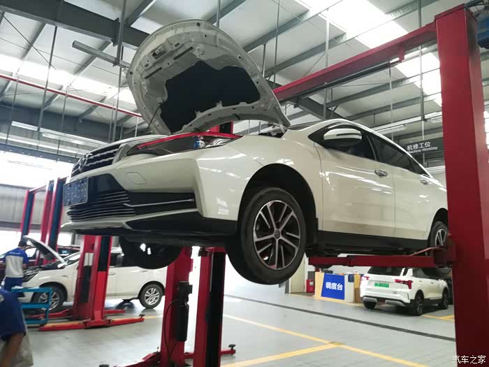登记好车子直接开进工位开始保养,今天人不多!不用排队。