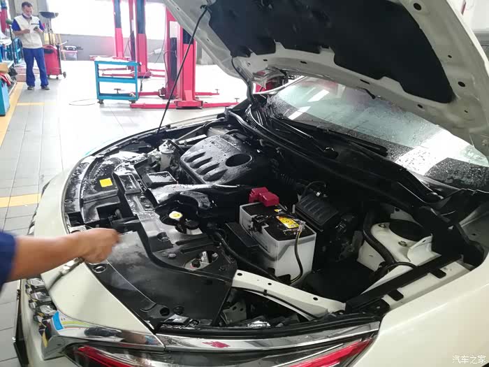 师傅很耐心的给发动机舱清洗了两遍。