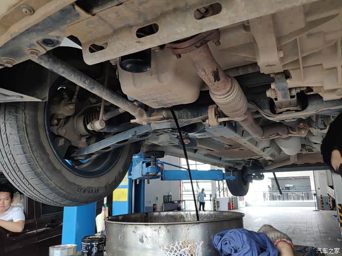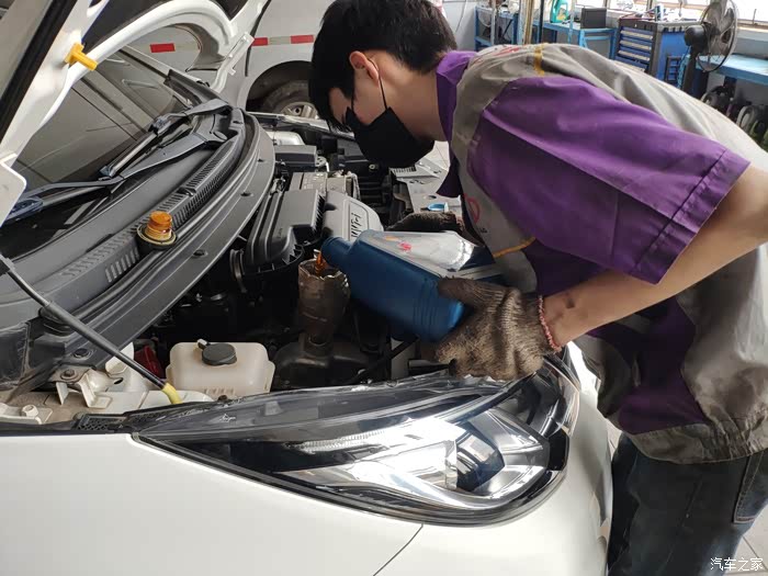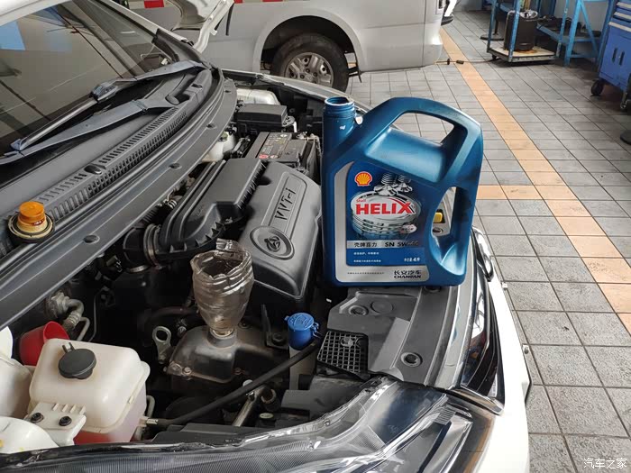 欧尚小白放下来了,开始倒入新机油。