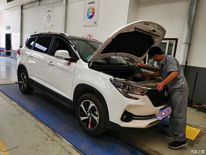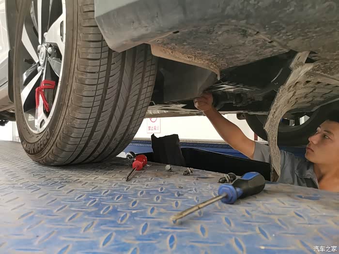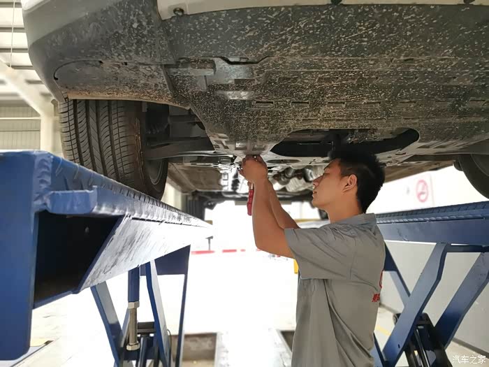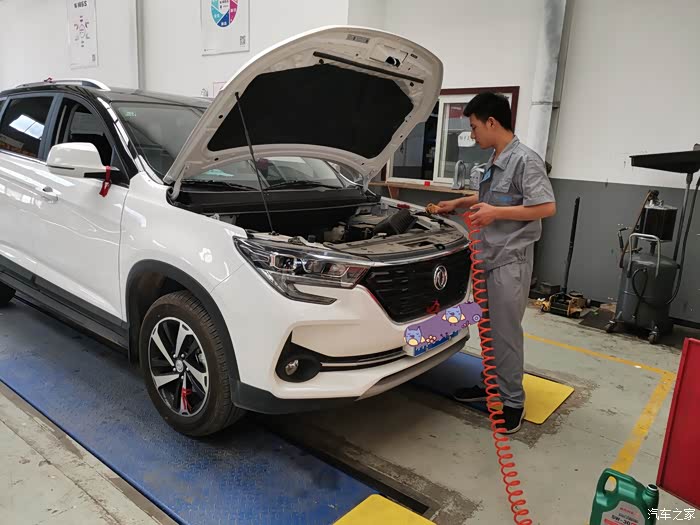 早上起来天气晴好,让人心情舒畅。时间过的真快,转眼间和我家大白相处两个多月,也到了做首保的时间。一番梳洗打扮后开着我家大白来到了4S店,或许来的早的原因,车间里的车不是很多,到了车间大白就被维修师傅开到起升架上了。接下来就和大家分享一下我家大白的保养过程吧