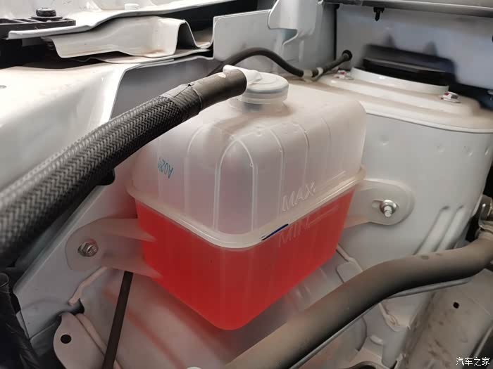 冷却液也就是通常说的防冻液。冷却液的量要保持在标线以上,缺少太多会引起发动机高温哦。