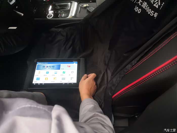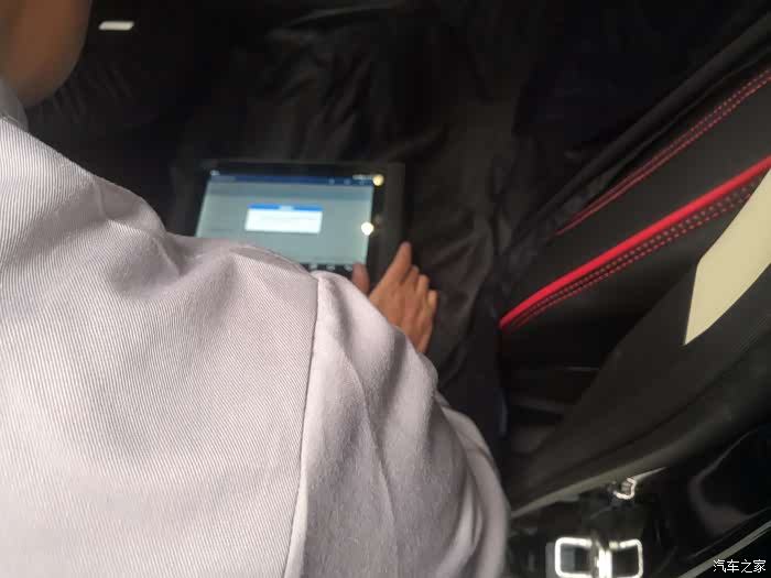 售后的老师轻车熟路的把车子开到工位上,这时候会检查仪表盘信息还有灯光检查