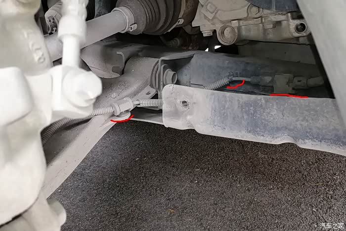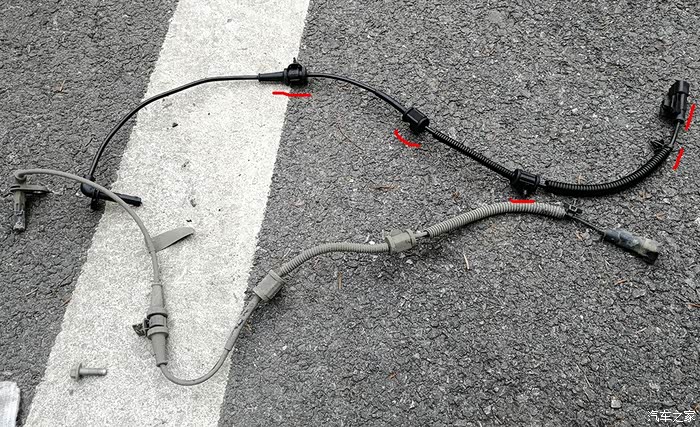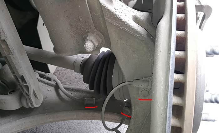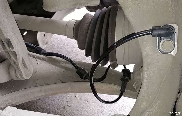 传感器安装在刹车盘背面,不记得是多大的套筒了,大概10MM吧,在下控制臂上也还有两个卡子,这两个比较好取
