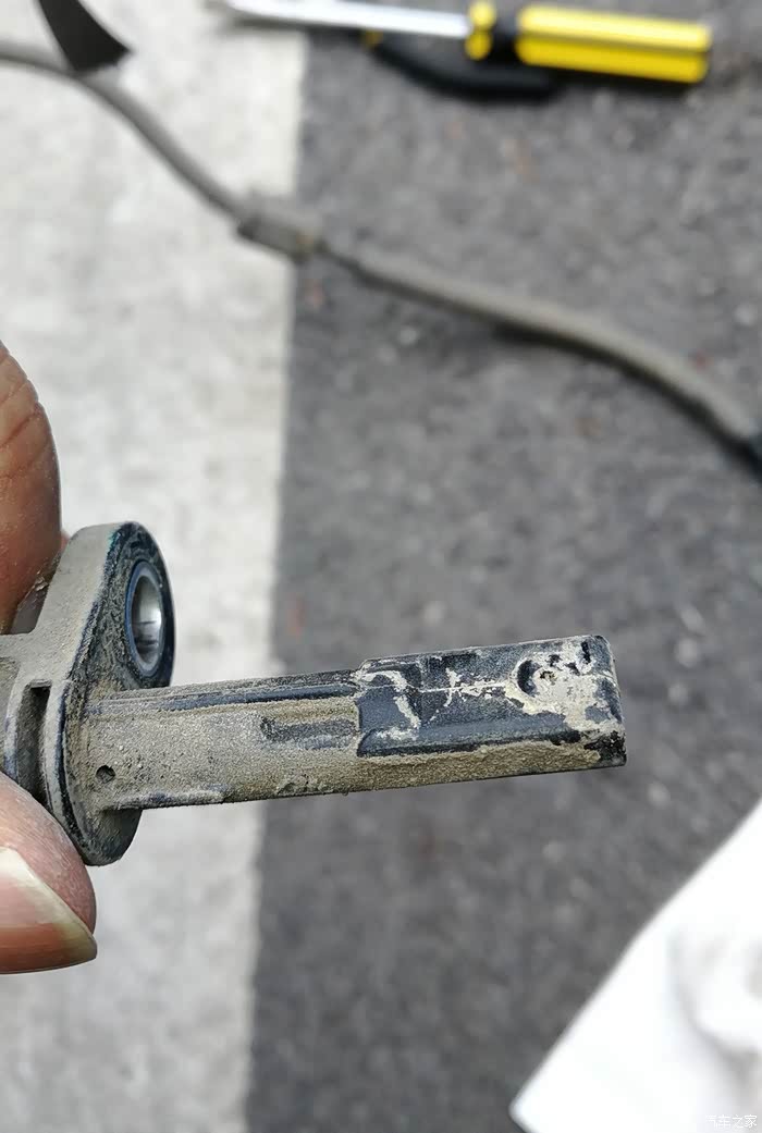 换下来的传感器,安装复位后故障码全部消失,整个安装过程应该有半个多小时,取那卡子费了点时间