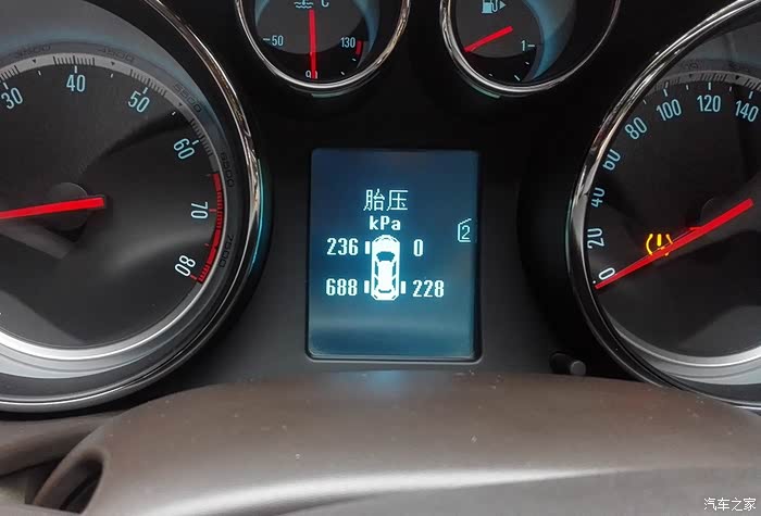 这个应该是五万多的时候,胎压故障灯亮了,一个胎压显示为0,一个胎压显示600多了