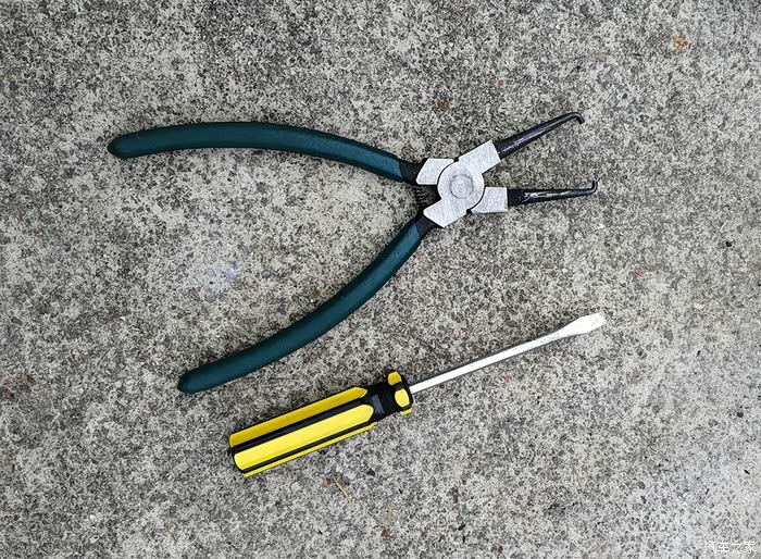 取那两个管子的时候,那蓝色的按钮用手或者钳子不太好弄,最好准备上边这个专用的油管卡钳