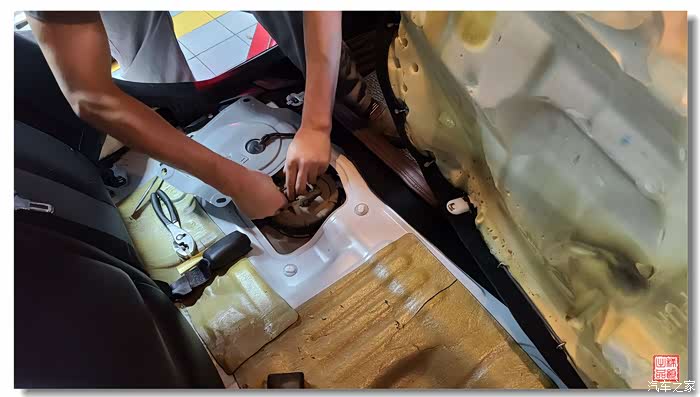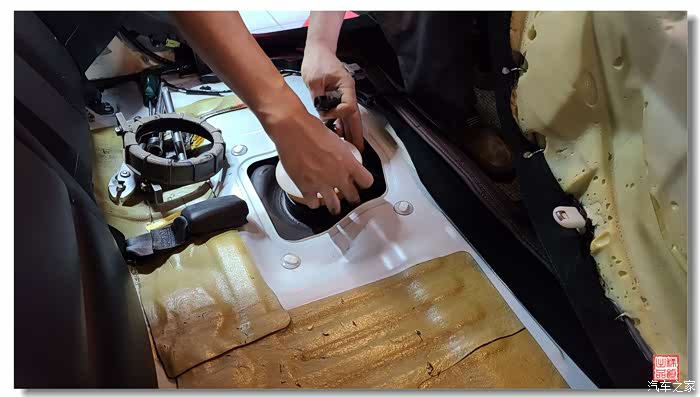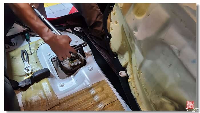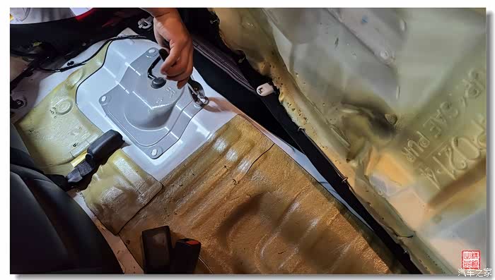 两个卡扣拆卸下后排座椅,用鱼尾钳拧开塑料卡扣即可打开外盖,日系车的设计还是算人性化,非常方便后期的维护!