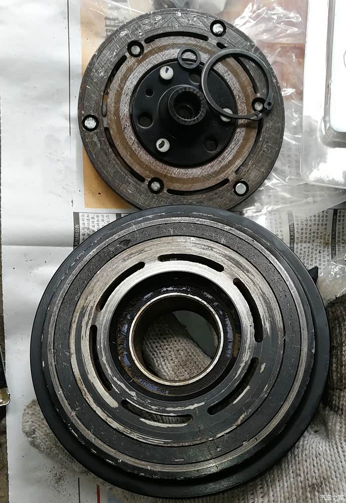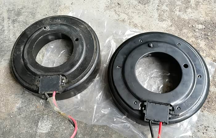 压缩机离合器主要是三个部分,吸盘、皮带轮、线圈,我只买了个单独的线圈,没有买三件套