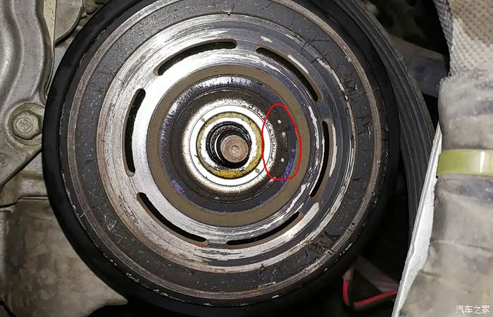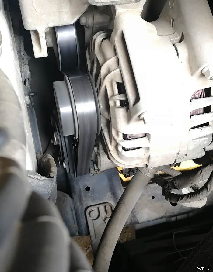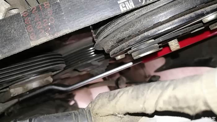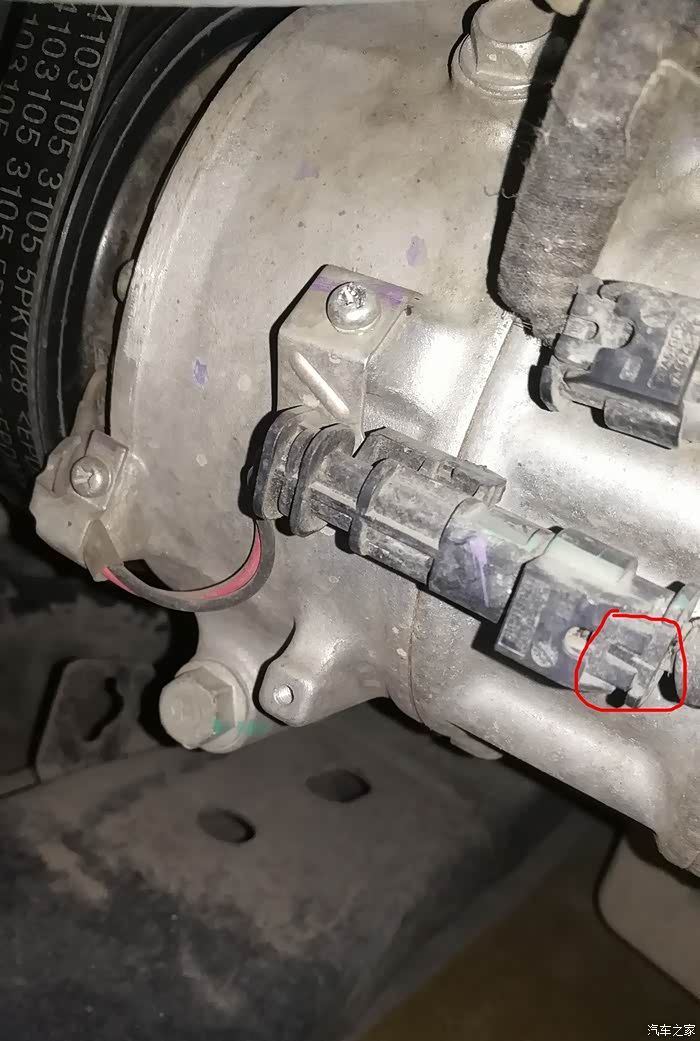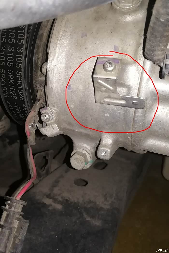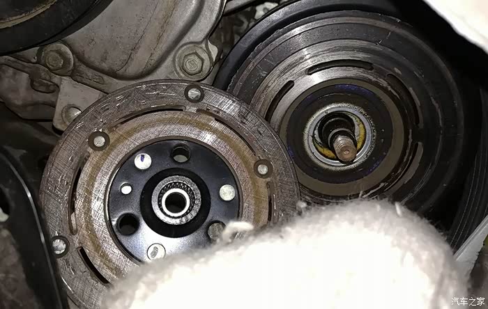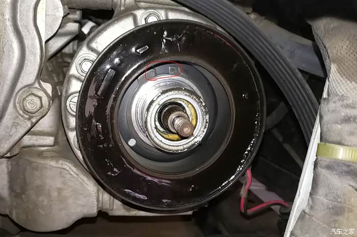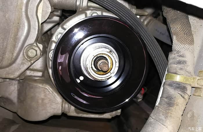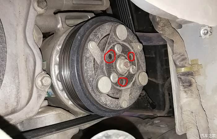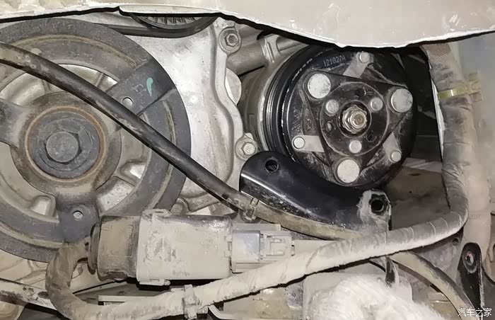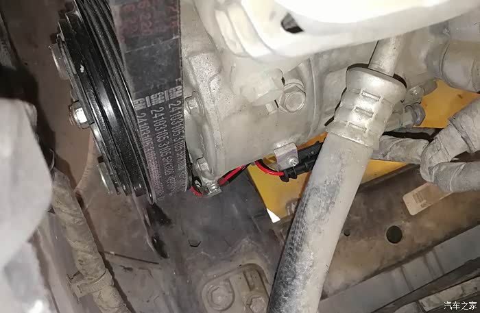 再打开空调,发现压缩机没有工作,就是最下边那个皮带轮