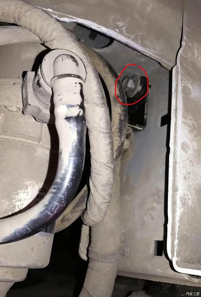 这个螺丝在上边红箭头指的里面,我是通过手机摄像头看着才拧下来的,套筒根本放不进去,只能用开口扳手慢慢拧