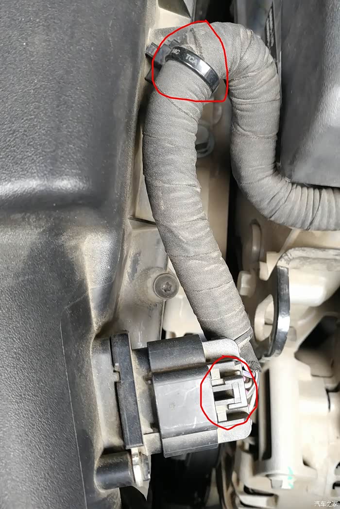 空气流量传感器摁住卡子就可以取下,线束卡子要在下边拨弄一下才能取出来