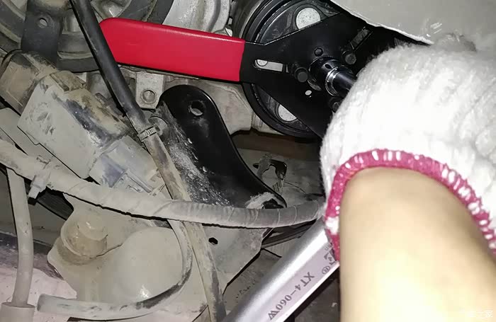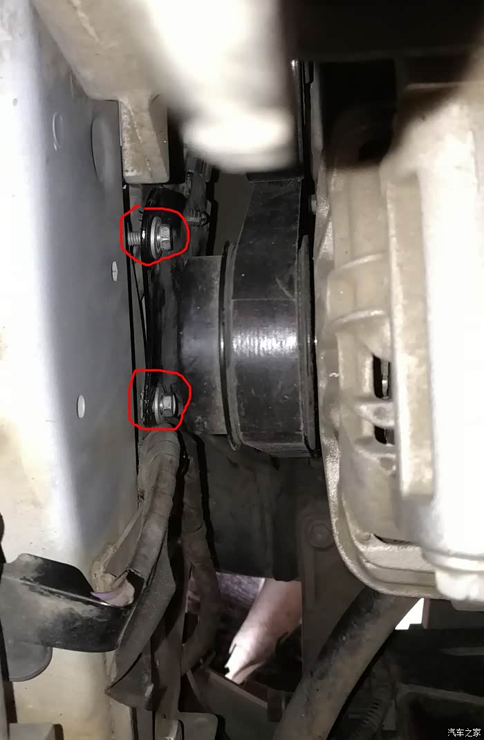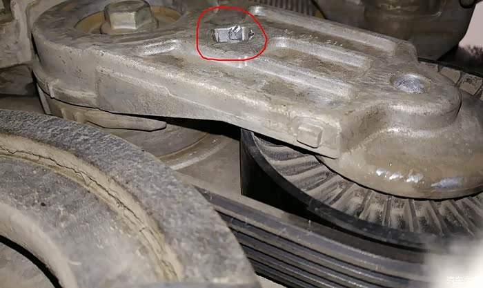 完了再拆发动机支座,不拆他就没办法调整皮带轮涨紧器,这几个螺丝都是15MM套筒