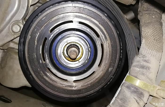 终于看到主角了,这个就是压缩机的离合器,在没有开启空调的时候,电磁线圈没有通电,吸盘不会吸合,皮带轮是空转,压缩机不会工作,只有开启空调的时候,通过电磁线圈产生磁力吸合吸盘,压缩机轴承才会跟随发动机转动运行