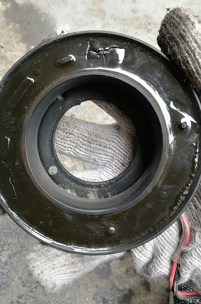 取下皮带轮就剩下线圈了,罪魁祸首就是他了,明显看到已经裂开了,也是通过卡簧固定的