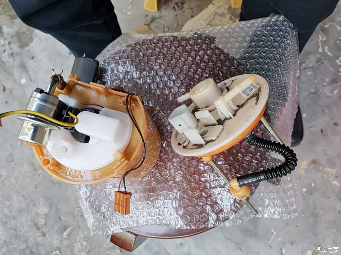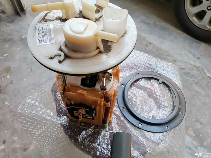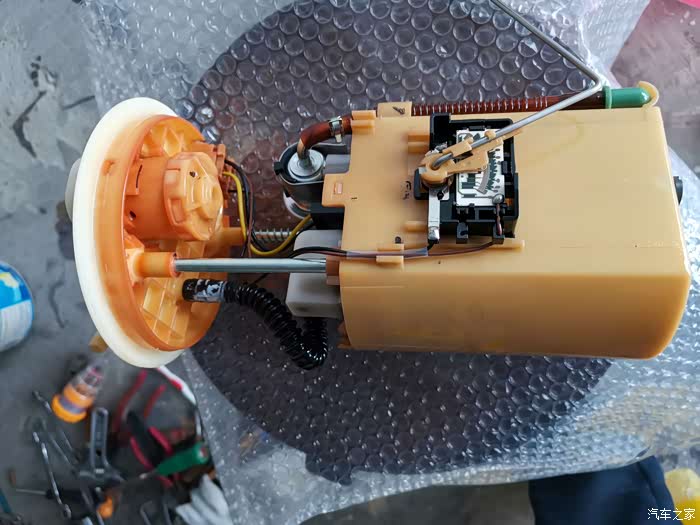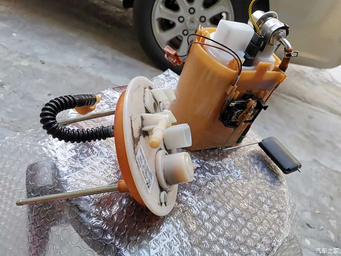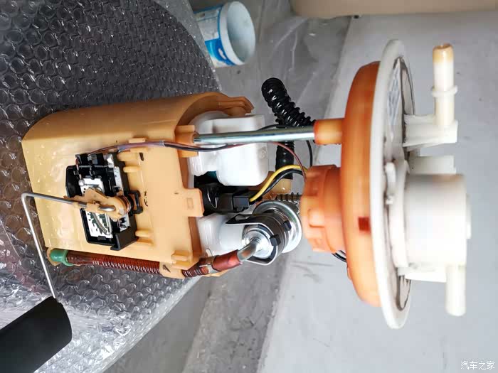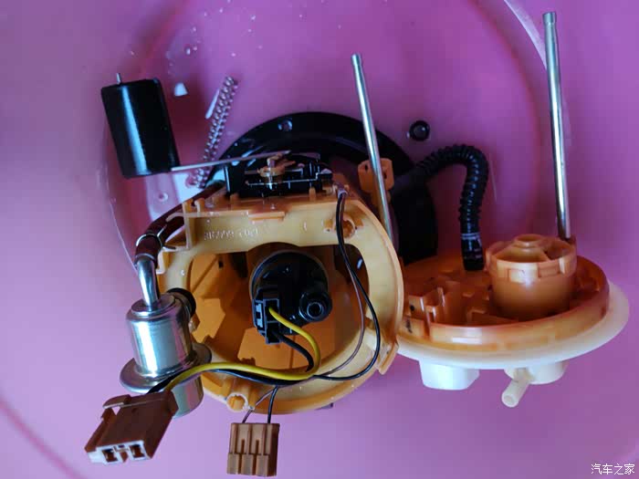 这就是汽油泵及滤芯总成,取出时一定要小心,不要碰坏油位浮子。