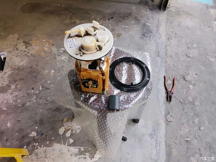 汽油泵及滤芯总成正面,开始解体换滤芯。