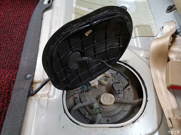 装回汽油泵及滤芯总成,装好线柱与油管,盖好外盖,安装后排座椅,接回电瓶负极,作业完成,