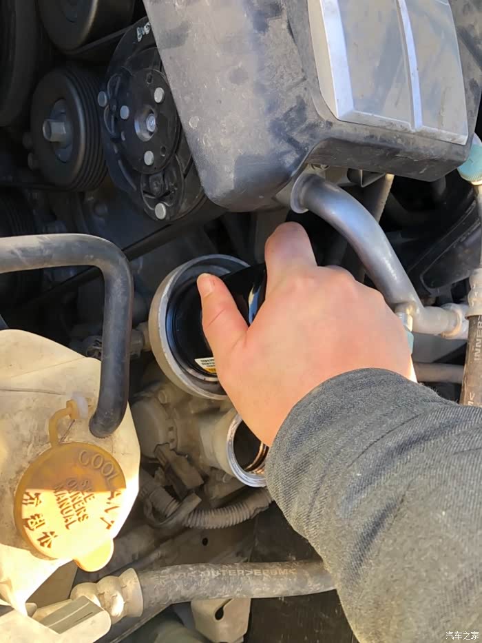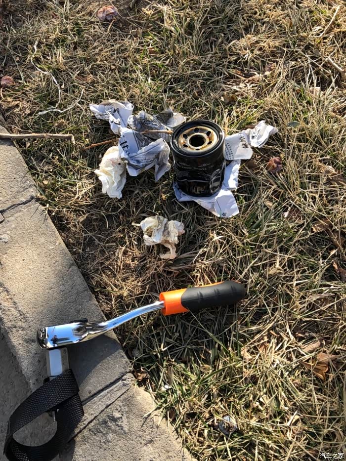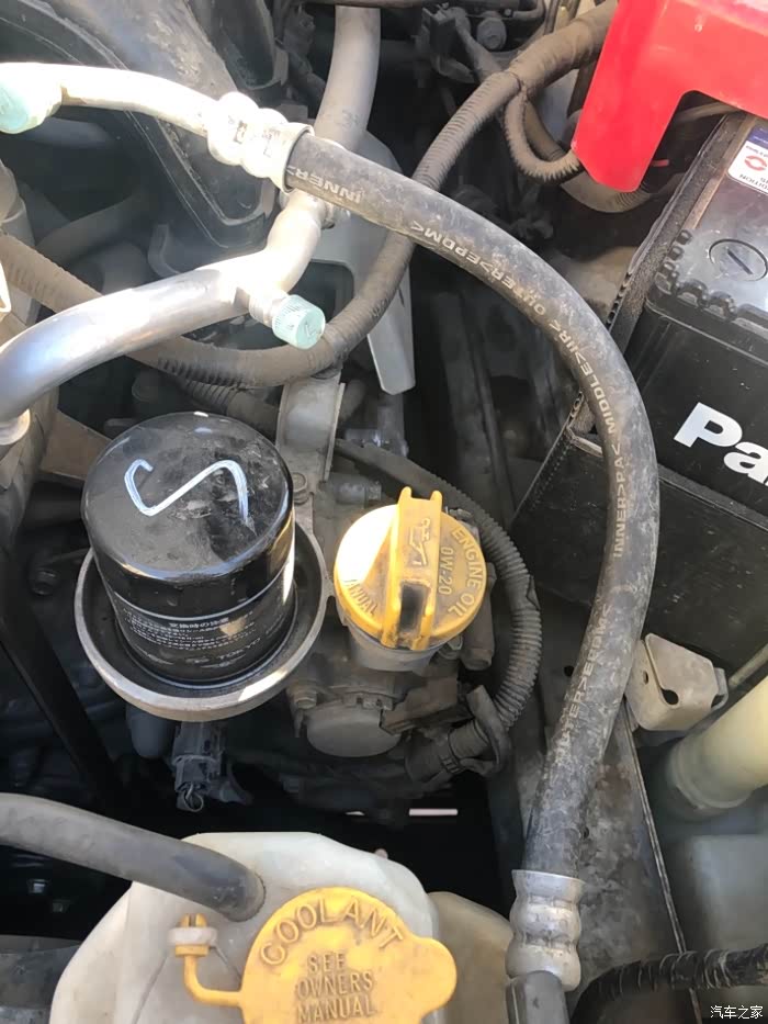 手拧上新机滤,记得给新机滤的密封圈抹点机油,手拧的力道够用了,基本不用加扳手,后面打着检查确实不漏