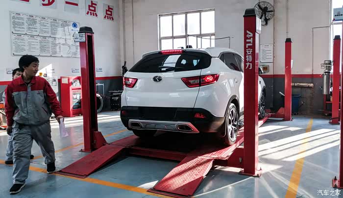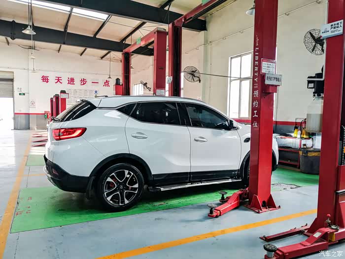 维修保养车间坐等保养,这个工位是给提前预约的车辆使用的。