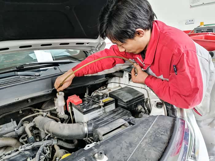 更换刹车油时候因为维修技师都在接车,我和负责给我保养的技师又比较熟(十月份他弟弟结婚的婚车我有参加),所以我配合完成了更换刹车油,其实也比较简单就是在车上根据维修技师的口令反复踩刹车。