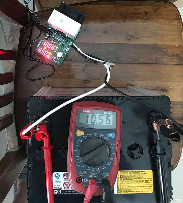 低于10.5V后,放电结束,电子负载显示本次共放电13.3AH,另外当停止放电后,电瓶的空载电压马上上升到11.5V以上,并继续缓慢上升。