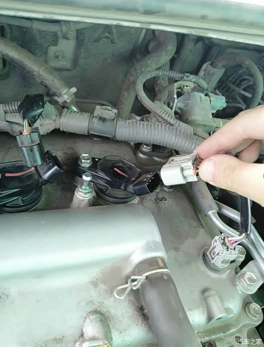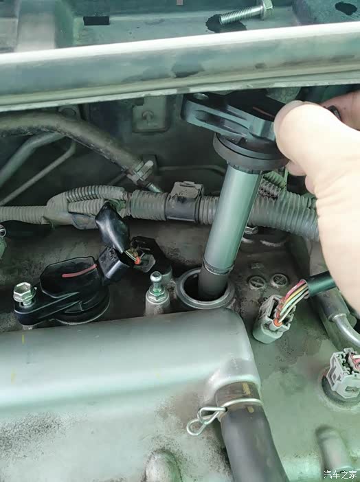 左右晃动一下点火线圈,拔下来放一边。