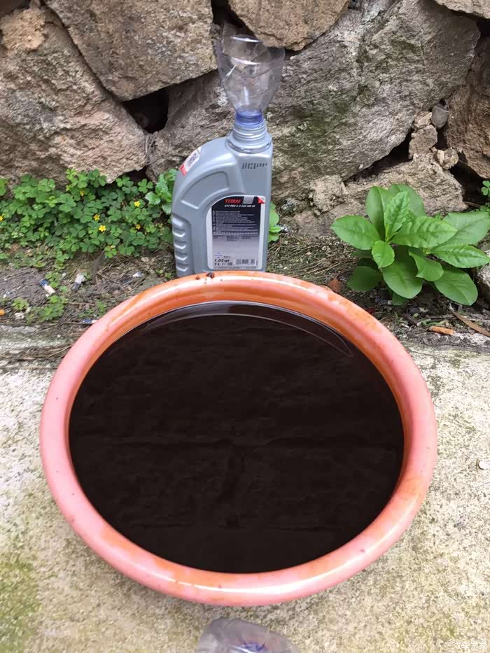 废机油不能随意倒入下水道,把废机油装回机油桶,送给附近摩托车修理店,他能卖2元一斤。