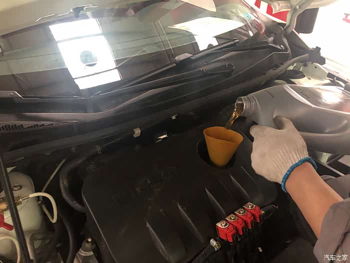 然后将新的机油格换上去,待完成后,放下小6,添加机油1