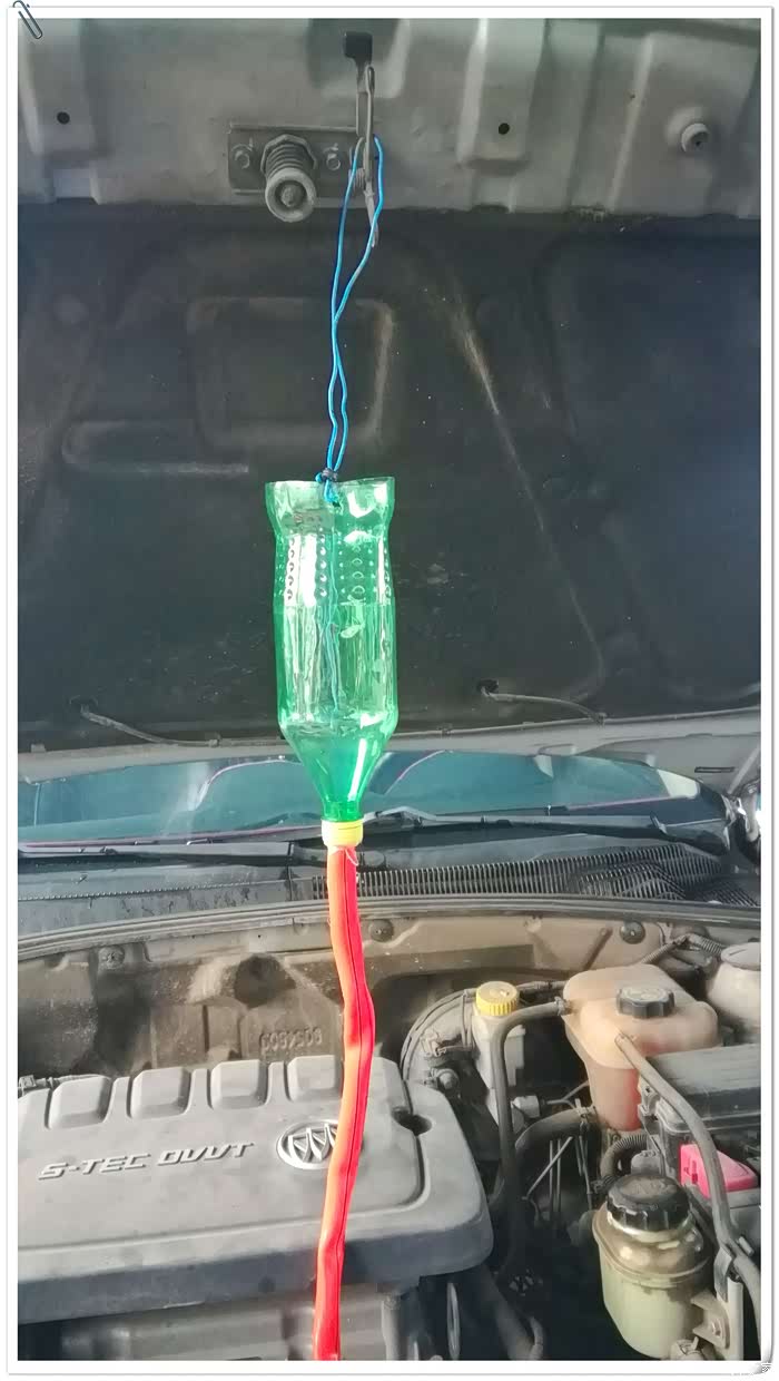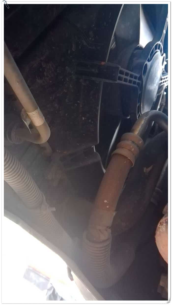 凯越的防冻液放水口比较奇葩,在风扇的底部,在上面是看不见的,要趴到保险杠底部用手电才能发现。然后水箱加水口是和膨胀壶连通的,直接从膨胀壶加防冻液就可以了。加注防冻液记得排空气,用手指捏上下水管排气即可。