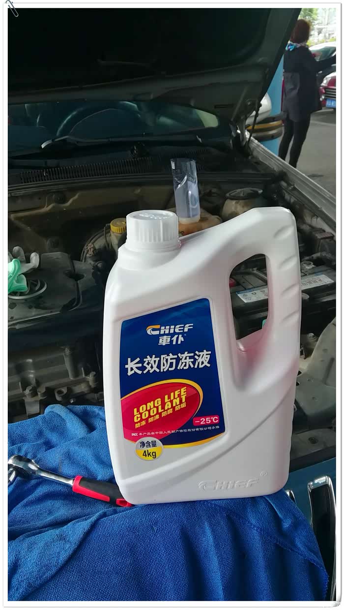 加注的车仆红色-25度防冻液。