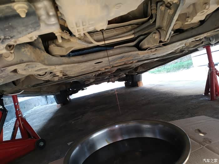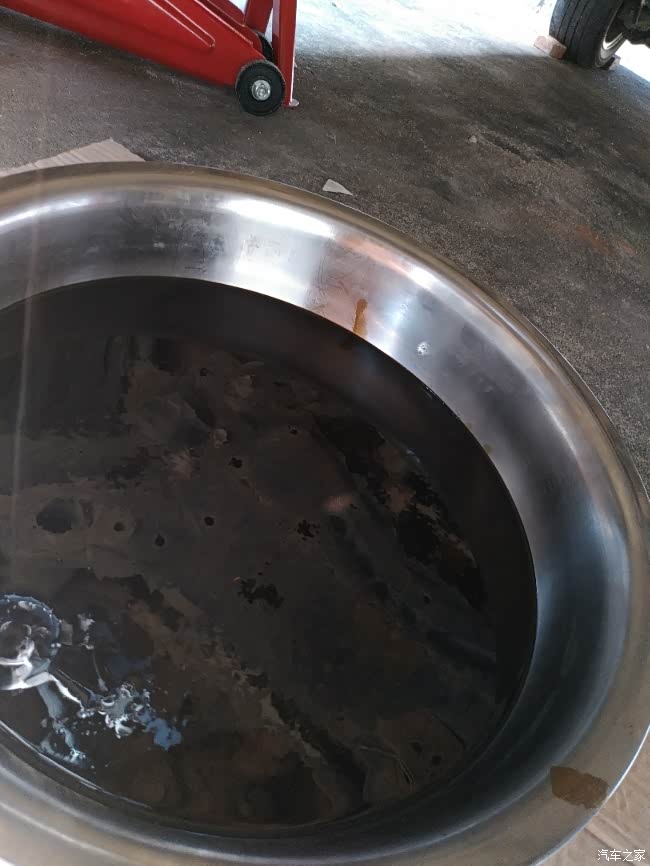 打着发动机,预热一点时间,机油流动性好些,然后扭开机油加注口的盖子,准备好接油的盆子,扭开油底壳放油螺丝