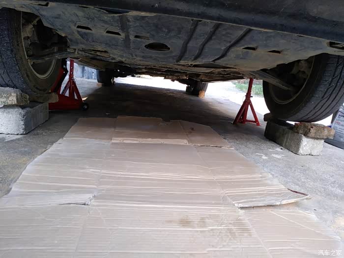 为了安全起见,绝不能只靠千斤顶支起就钻车底,要放支架,轮子我都拿砖头垫起。