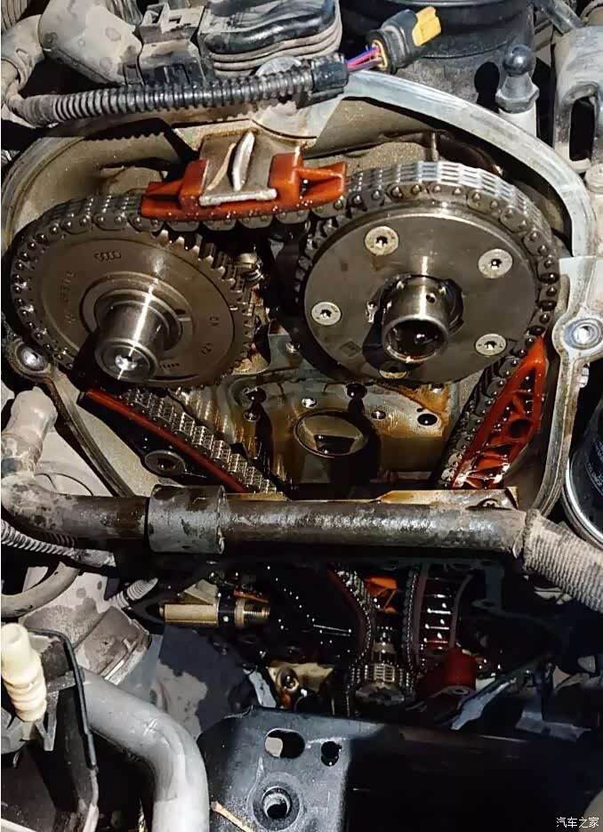 大众的第二代EA888发动机正时链条设计为一大一小,本次维修更换的正时链条为大链条,小链条因不存在设计缺陷及隐患,不做更换。