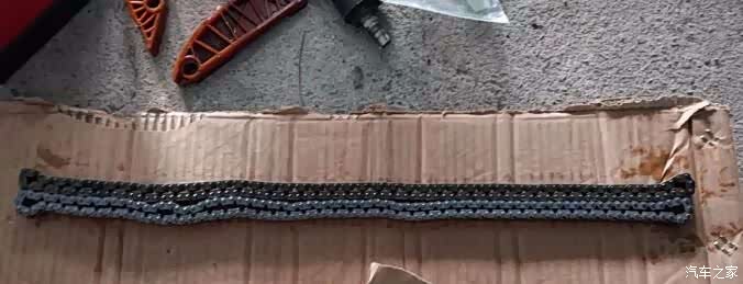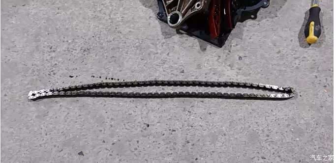 这是拆下的由于材质问题被拉长的代号为“06H”的正时链条。