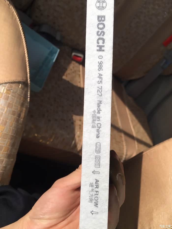聪明的小伙伴大概可以猜出来。楼主在用一张小纸条塞进空调滤芯盒,打开汽车空调,实验气流方向。实践证明玛驰的空调风气流是从车头流入车尾的!由此证明四儿子店给咱安装的方向是错的!错的!