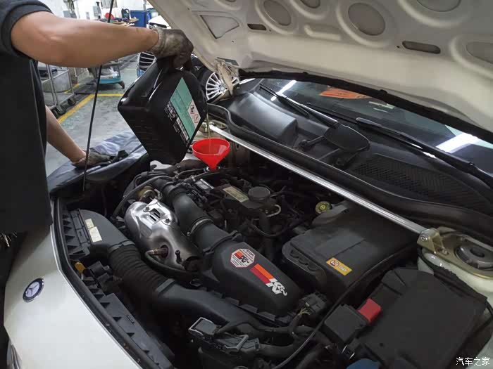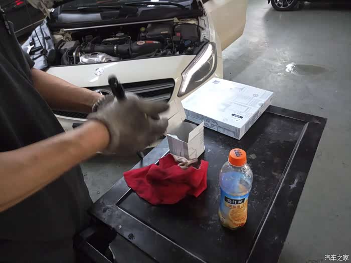 由于改装过,所以这个机滤有点难拆,师傅在拆,我在旁边帮忙打电筒