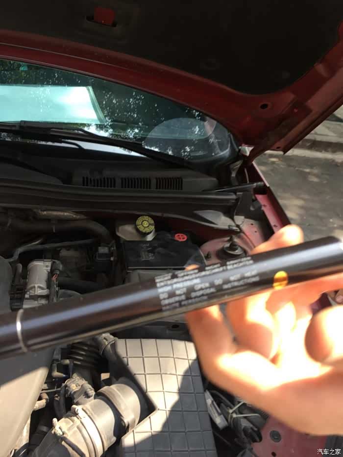 更换其实也简单,有配件和螺丝刀自己应该都可以搞定。只是换好后要消故障码,这个步骤自己解决不了既然来都来了,将就就把前引擎盖的液压杆换了,感觉原厂的液压杆有点泄压了,坚持不了多久就要自己关下来,有点小尴尬,果断换了以绝后患。两根液压杆材料费加人工费一共85块,确实是良心价