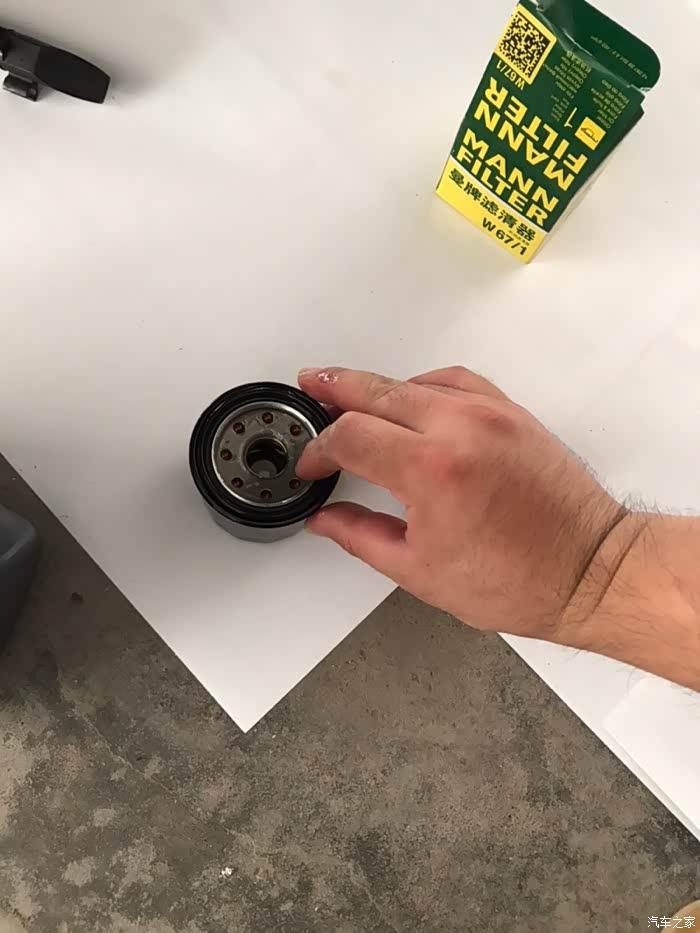 机油滤芯放进去,手转紧,再用扳手稍微转一点
