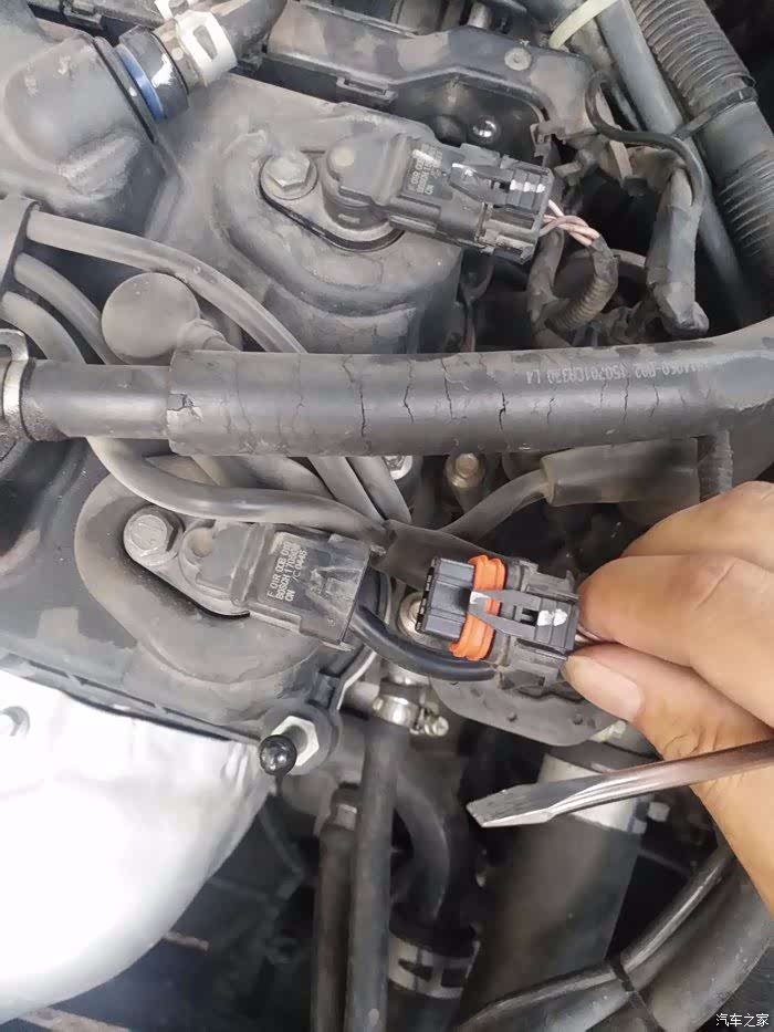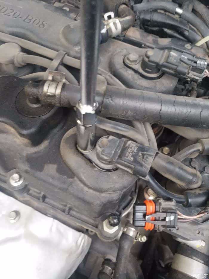 接下来用丁杆10个套筒拆下传感器,为了很好操作,刚买的新的