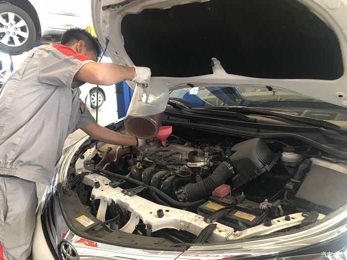 师傅手法娴熟的把机油加进去,然后开始检查机舱里面有没有其他的问题。完毕之后,就会去更换空调滤芯之类的东西。这些消耗品呀,该换就得换,经过了一个夏天,天天开空调,滤芯上都布满了灰尘,赶紧换一个干净的,车内的空气也就更干净一些。
