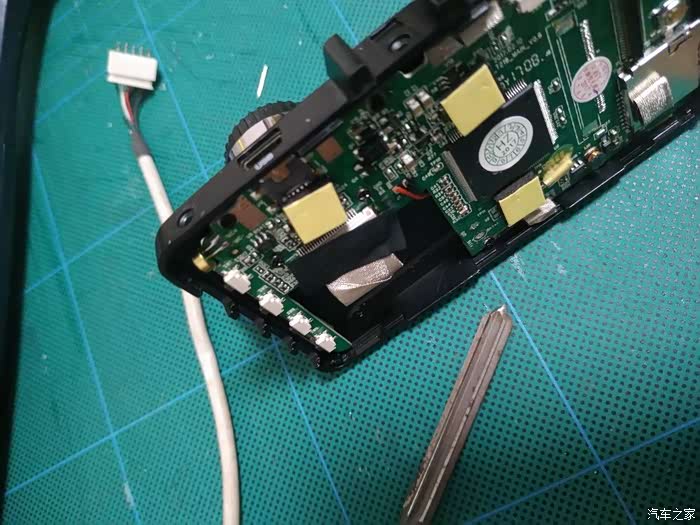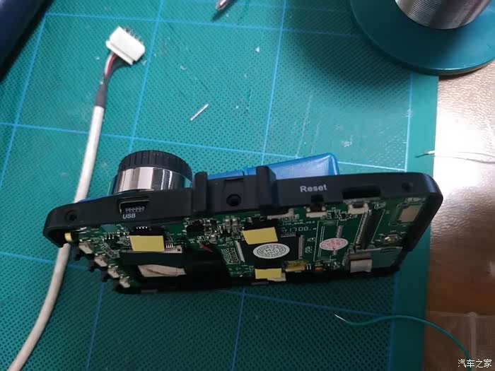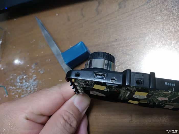 这才发现凌度的前侧外壳竟然是合金的,找miniusb旁打孔穿线。敲个定位坑,小白点就是