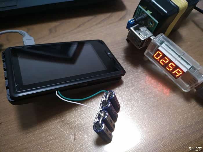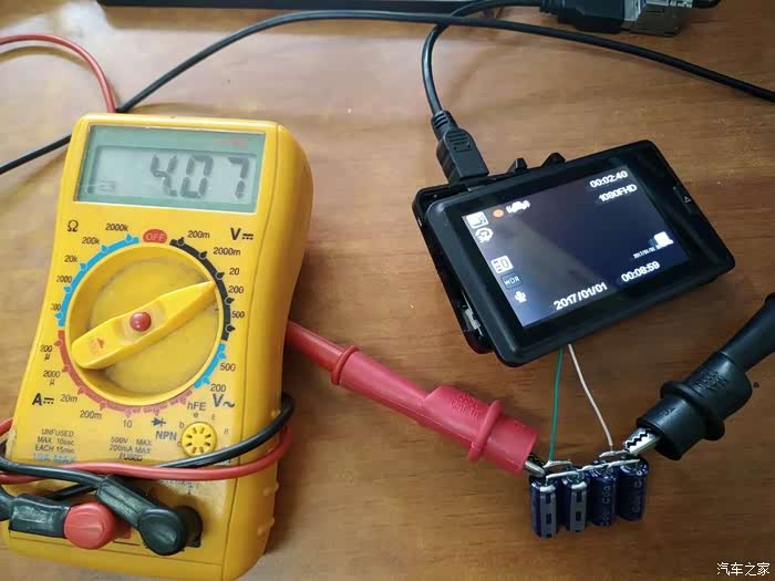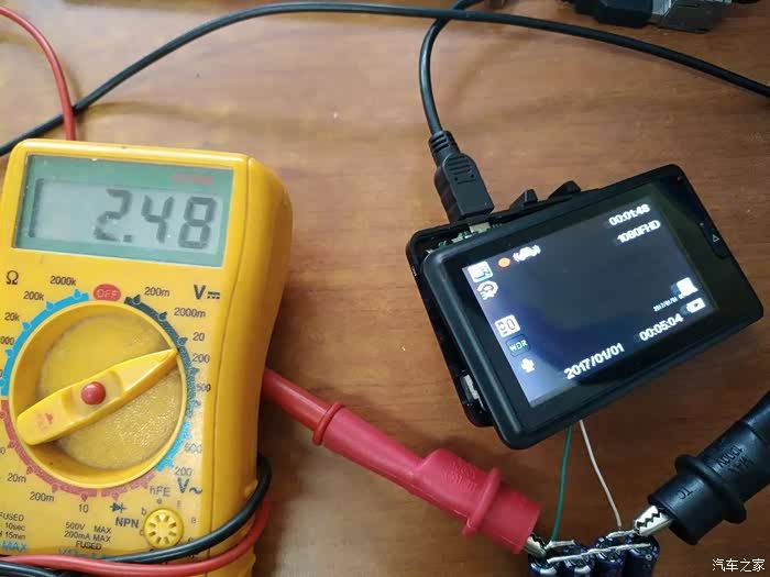 行车记录仪工作着,5分钟后法拉电容电压2.48V