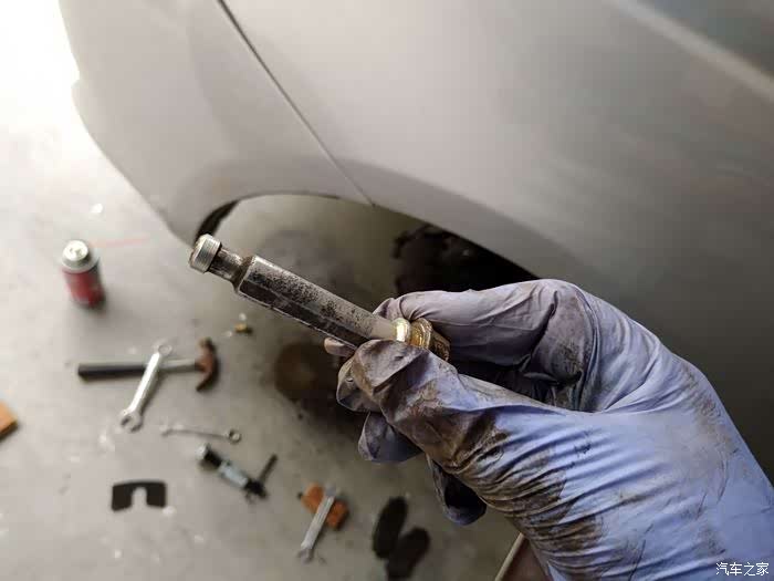 别一次性顶回,一半的时候去看看刹车油壶液面上升,看得出来刹车油的色泽比以前加入时深了很多,找时间有需要更换了。