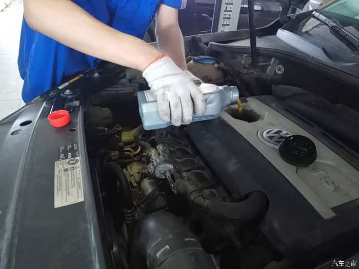 特地问了小哥,为什么是抽的不是放的,说是新帕要是像Polo一样放机油的话,机油是放不干净的,只有用机器才能抽干净。
