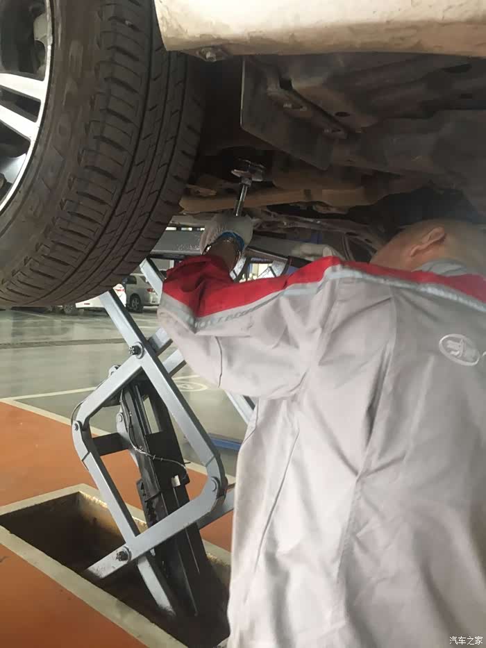 开到店里之后找到了店里负责保养的人员,之后开到了保养的车间内,等待着工作人员为我的爱车去做保养。