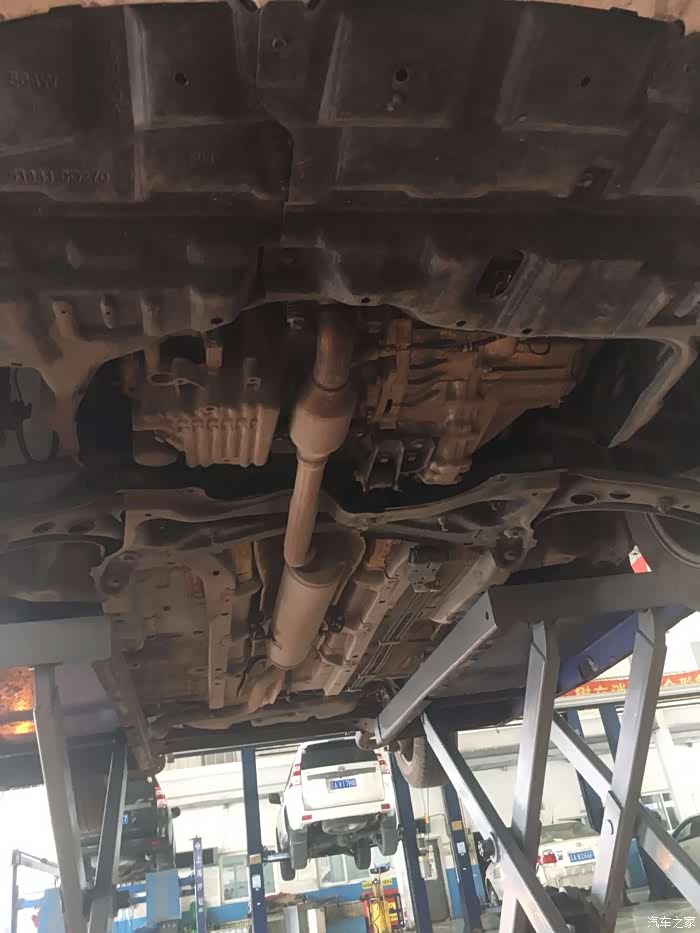 感觉地盘的结构还是没有那么的复杂,我这个地盘没有加装护板,也没有喷地盘装甲,跑了一年的时间就是感觉地盘下面全是泥土的感觉,发动机露出来在下面,看的还是比较清楚的。
