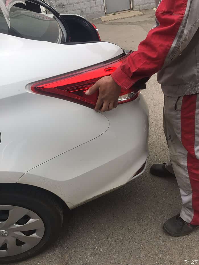 在往前走遇到了一辆和我同款的车应该是车主和一位师傅在弄一下什么,走近了看原来是在换左侧的后尾灯。